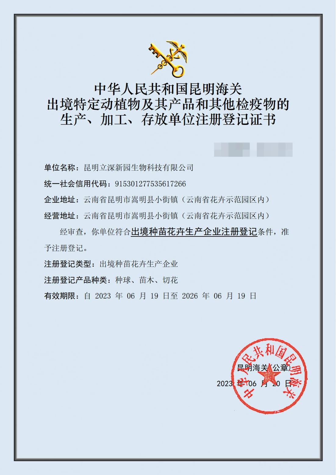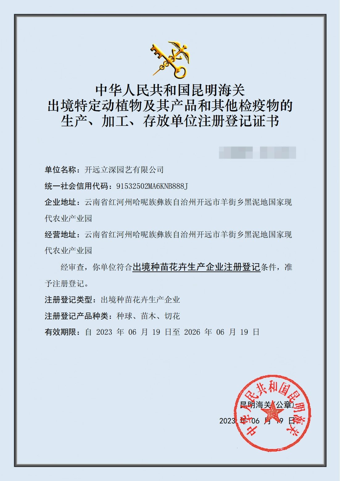 建立位于开远国家现代农业产业园的第二个农场-开远基地,注册“开远立深园艺有限公司”,扩大洋桔梗鲜切花生产