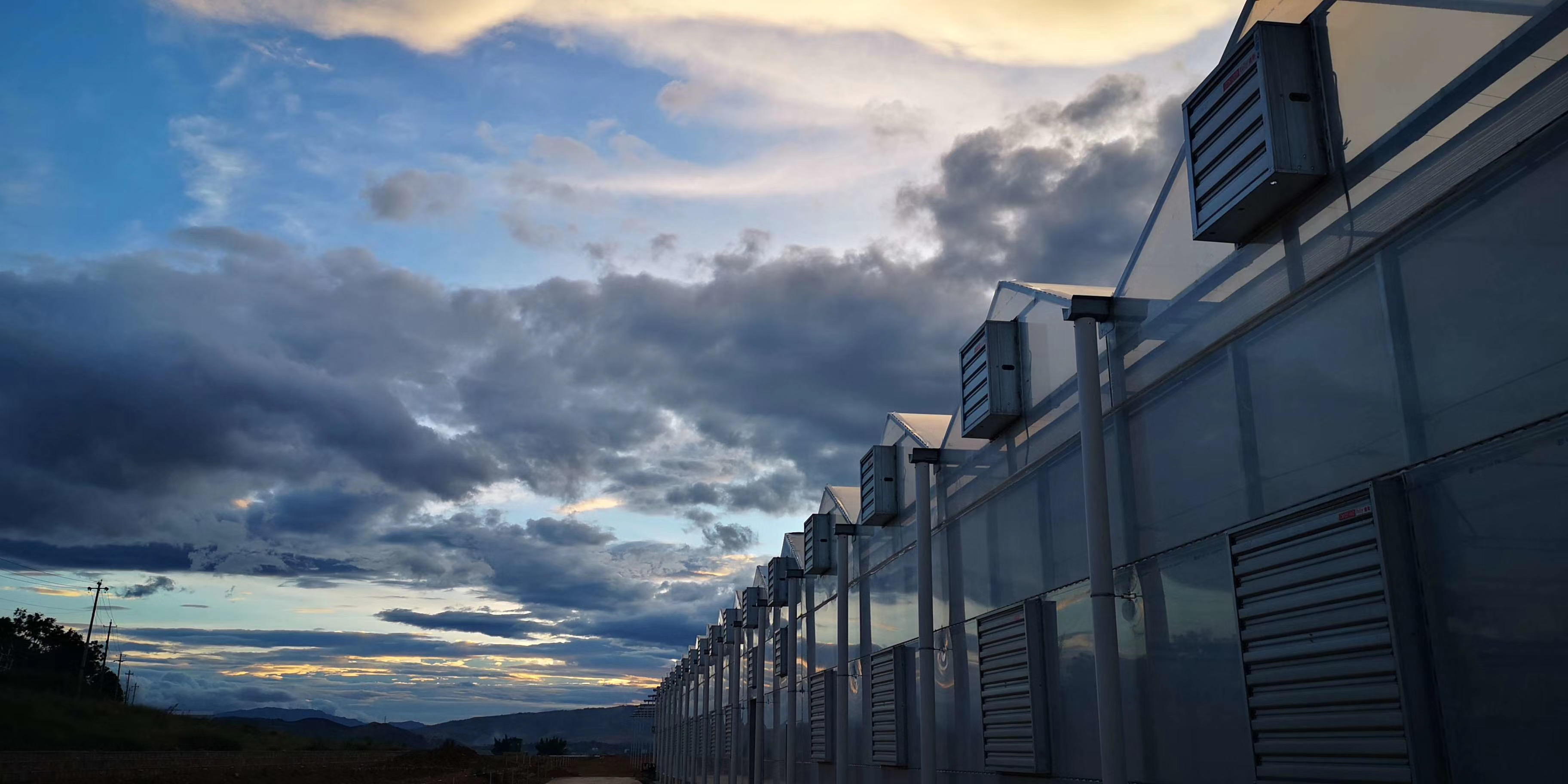 联栋封闭负压温室,智能调节温室内环境气候。具备全自动的环境控制和水肥系统。