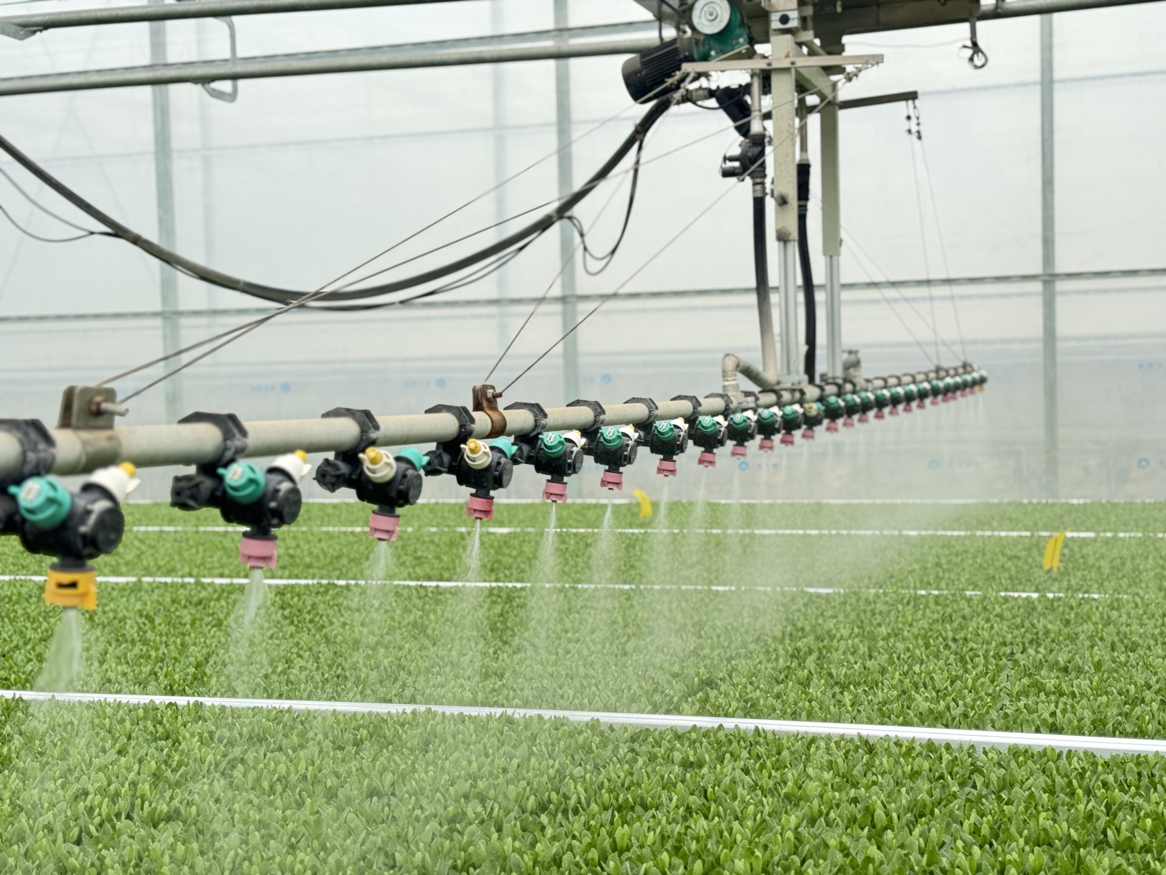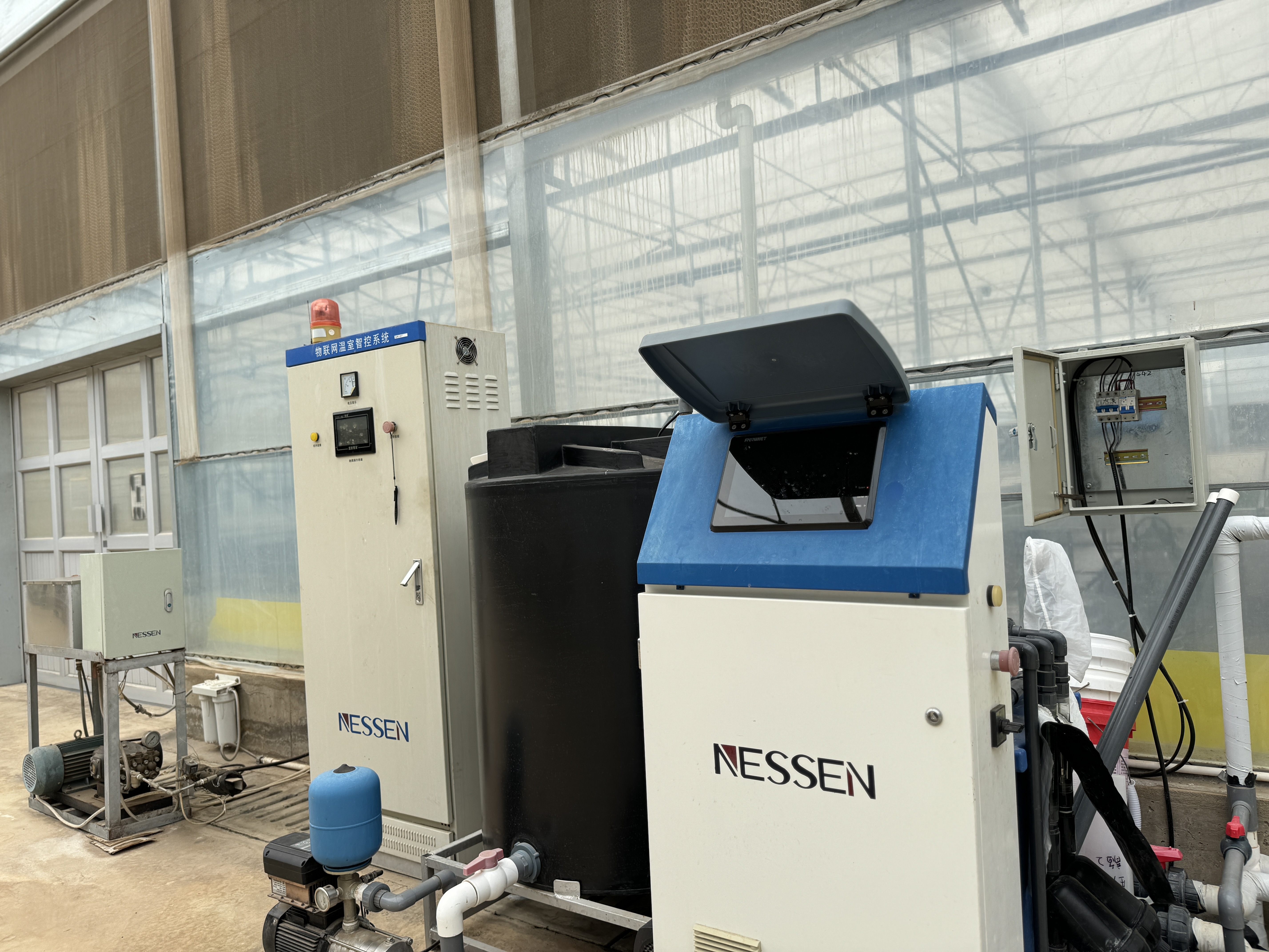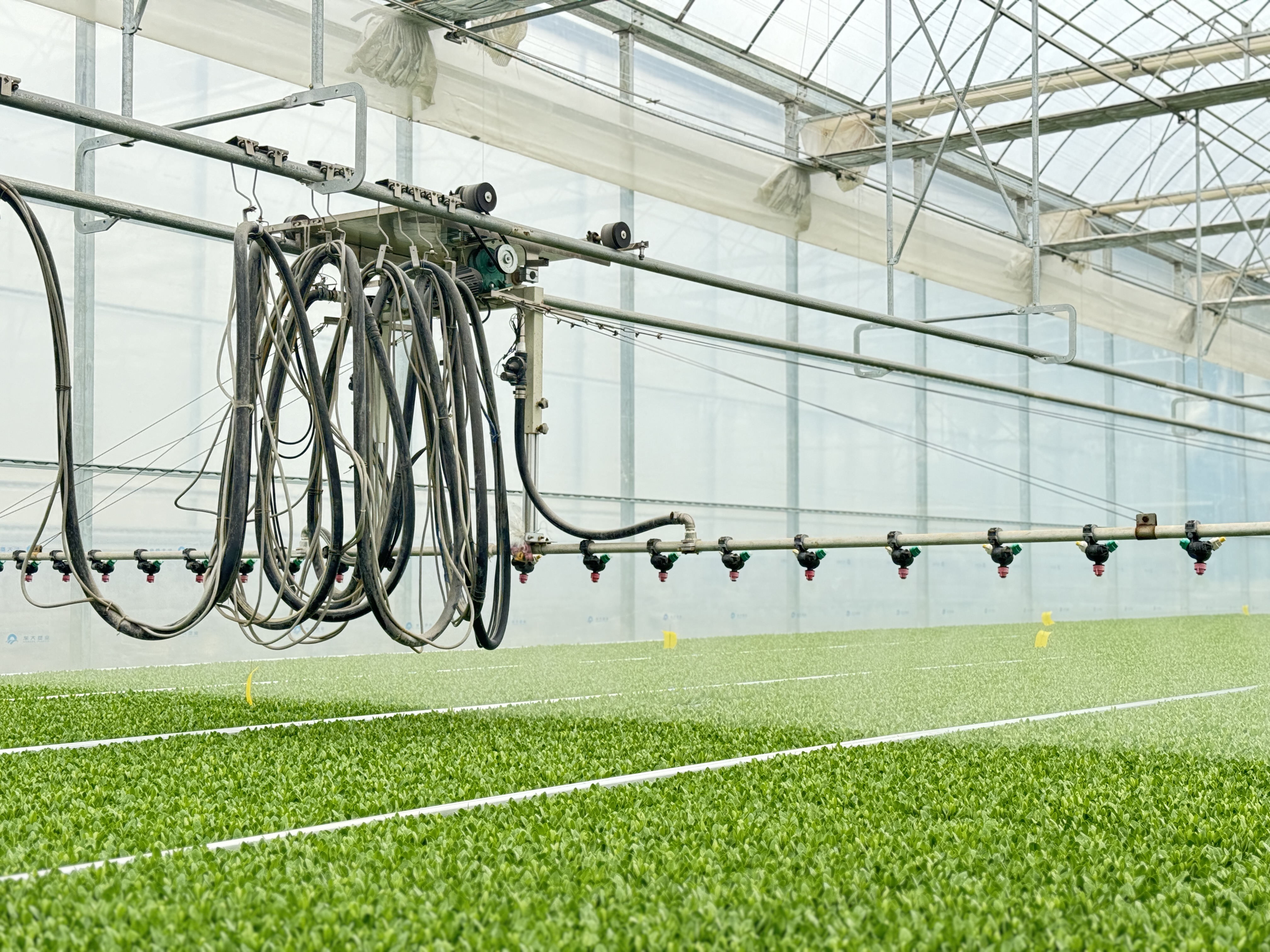 联栋封闭温室,智能调节温室内环境气候。具备全自动的环境控制和水肥系统。